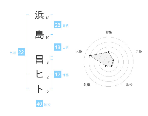 浜島 昌ヒトさんの総格は40画の2点