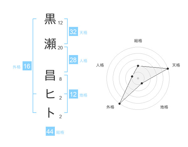 黒瀬 昌ヒトさんの総格は44画の2点!
