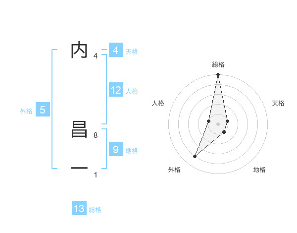 内 昌一さんの総格は13画の5点!
