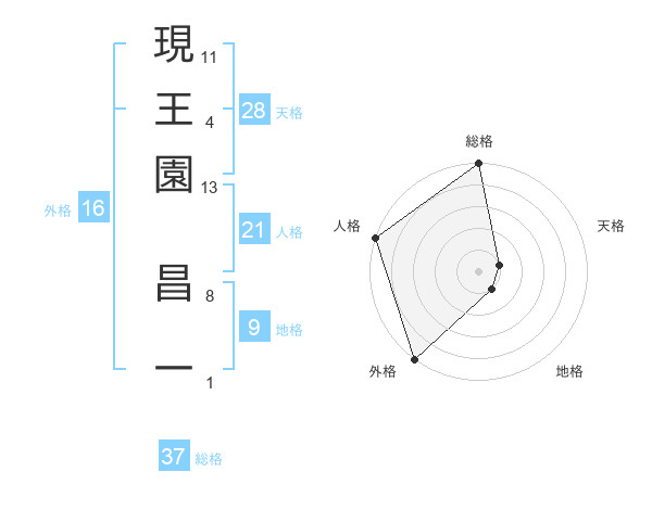 現王園 昌一さんを姓名の画数から五運を鑑定