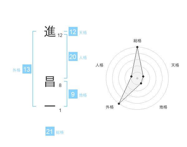 進 昌一さんの総格は21画の5点!