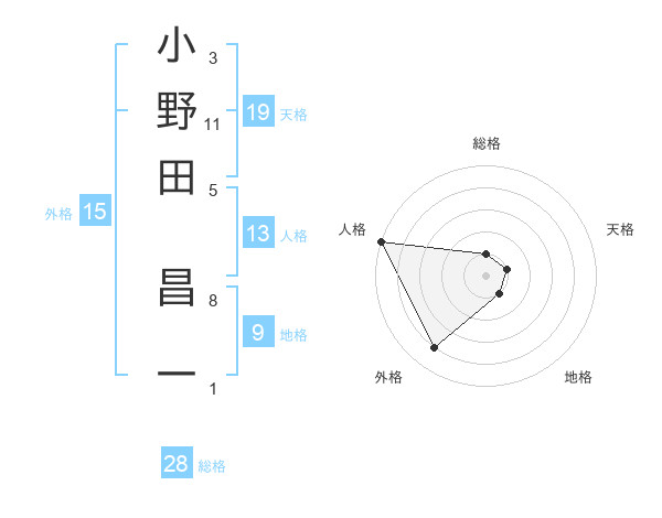小野田 昌一さんを姓名の画数から五運を鑑定