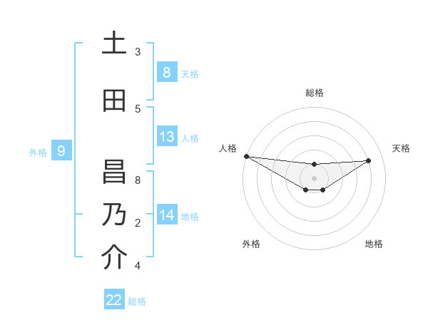 土田 昌乃介さんの総格は22画の1点!