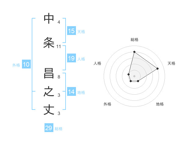 中条 昌之丈さんの総格は29画の4点!