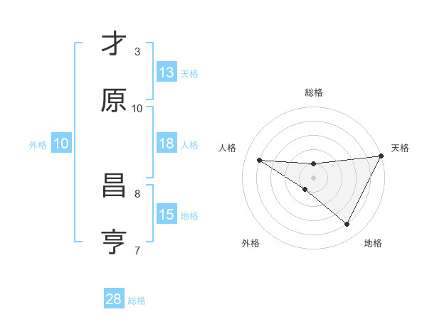 才原 昌亨さんを姓名の画数から五運を鑑定