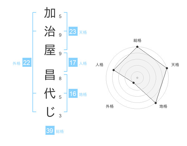 加治屋 昌代じさんを姓名の画数から五運を鑑定