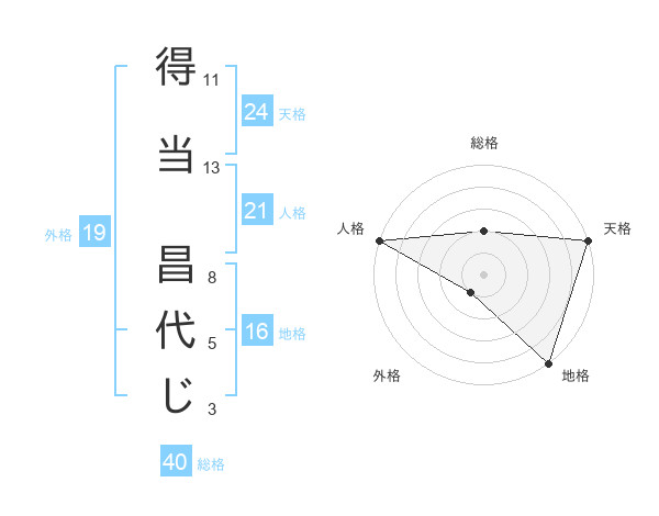 得当 昌代じさんの総格は40画の2点!
