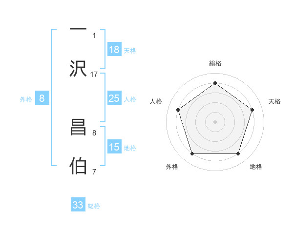 一沢 昌伯さんを姓名の画数から五運を鑑定