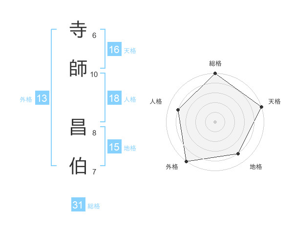 寺師 昌伯さんの総格は31画の5点!
