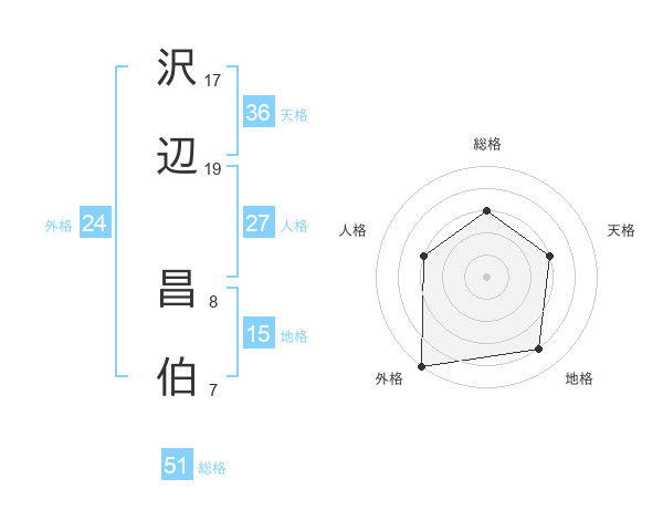 沢辺 昌伯さんの総格は51画の3点!
