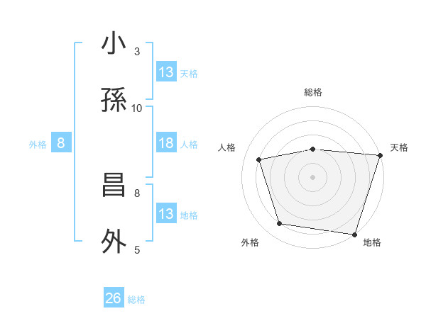 小孫 昌外さんを姓名の画数から五運を鑑定