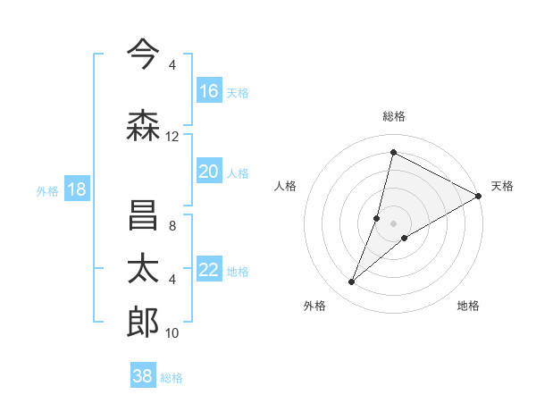 今森 昌太郎さんの天格は16画の5点!