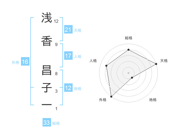 浅香 昌子一さんを姓名の画数から五運を鑑定