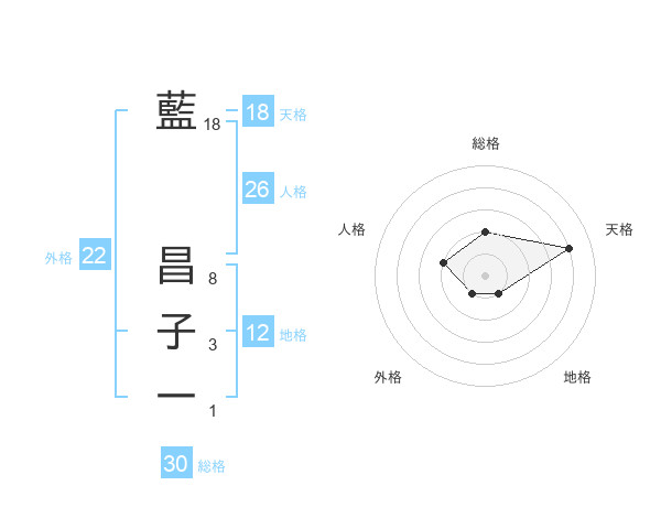 藍 昌子一さんを姓名の画数から五運を鑑定