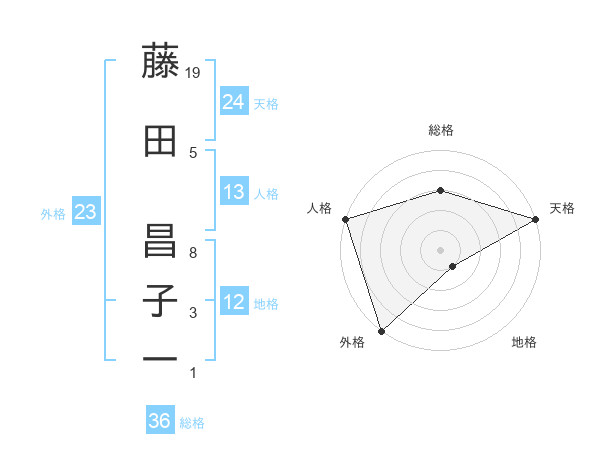 藤田 昌子一さんを姓名の画数から五運を鑑定