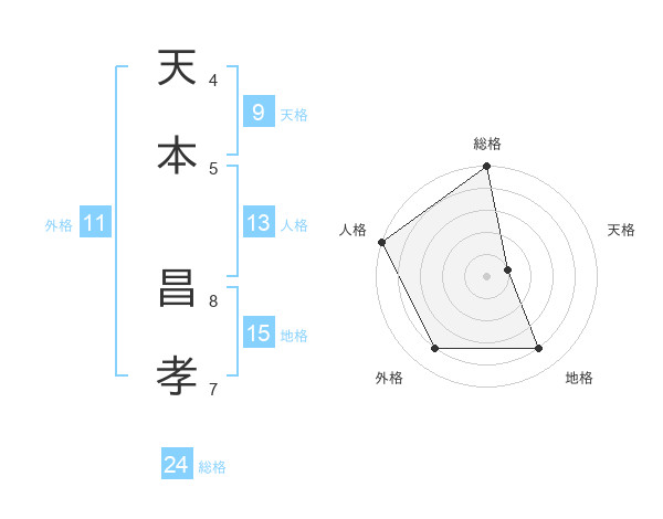 天本 昌孝さんの総格は24画の5点!