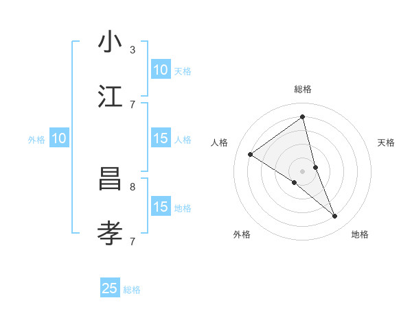 小江 昌孝さんを姓名の画数から五運を鑑定