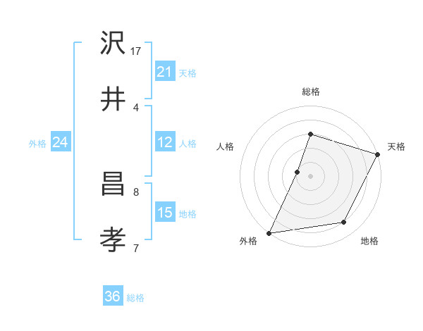 沢井 昌孝さんを姓名の画数から五運を鑑定
