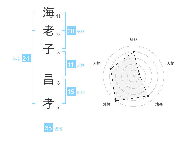 海老子 昌孝さんを姓名の画数から五運を鑑定