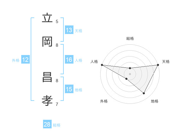 立岡 昌孝さんの天格は13画の5点!