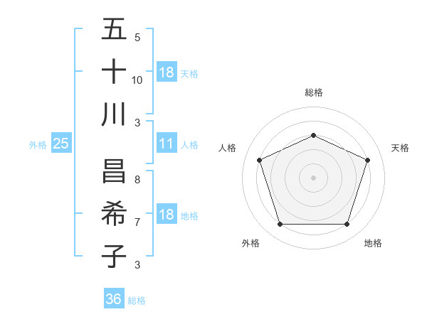 五十川 昌希子さんを姓名の画数から五運を鑑定