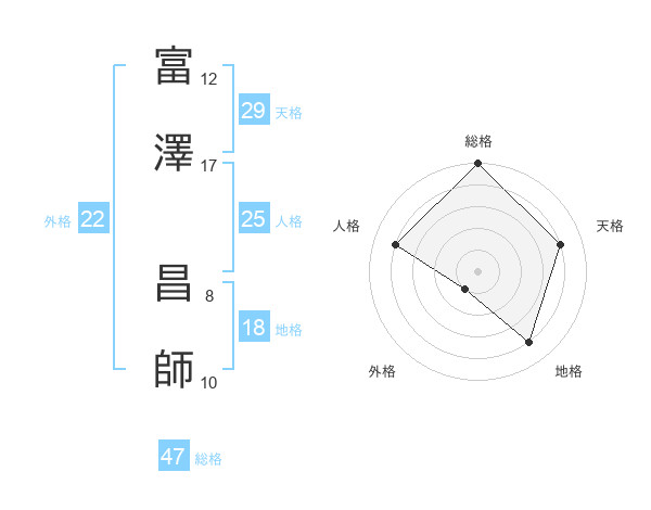 富澤 昌師さんの総格は47画の5点!