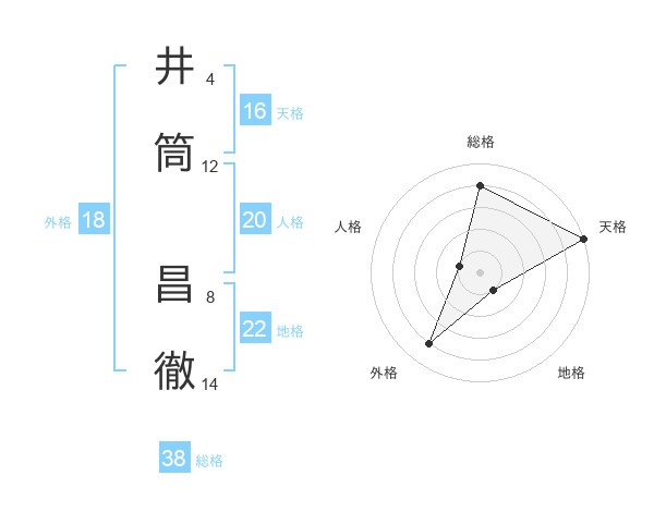 井筒 昌徹さんの総格は38画の4点!