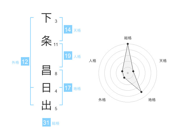 下条 昌日出さんを姓名の画数から五運を鑑定