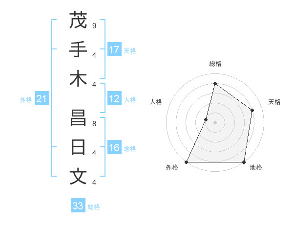 茂手木 昌日文さんの総格は33画の4点!