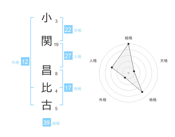 小関 昌比古さんを姓名の画数から五運を鑑定