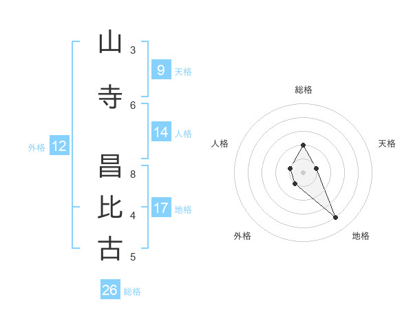 山寺 昌比古さんを姓名の画数から五運を鑑定