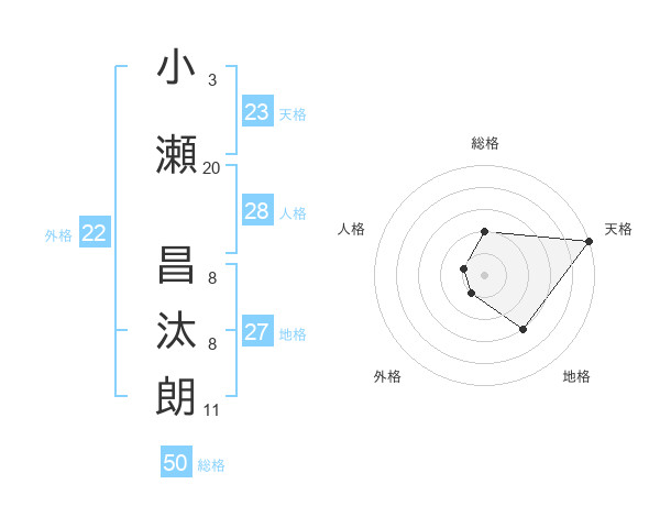 小瀬 昌汰朗さんを姓名の画数から五運を鑑定