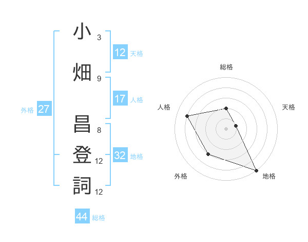 小畑 昌登詞さんを姓名の画数から五運を鑑定