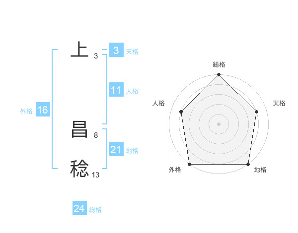 上 昌稔さんの総格は24画の5点!
