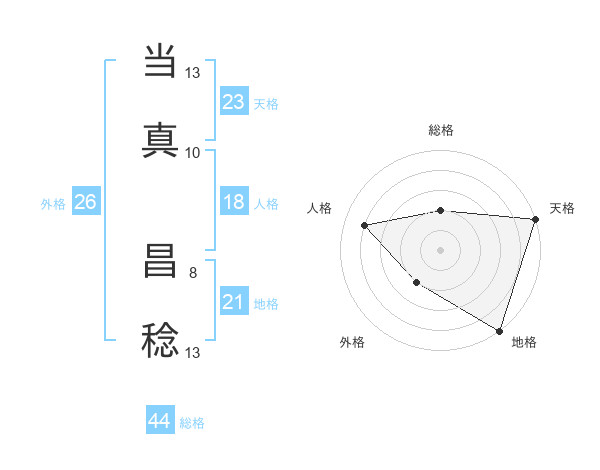 当真 昌稔さんを姓名の画数から五運を鑑定