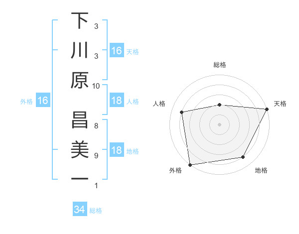 下川原 昌美一さんを姓名の画数から五運を鑑定