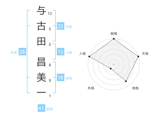 与古田 昌美一さんを姓名の画数から五運を鑑定