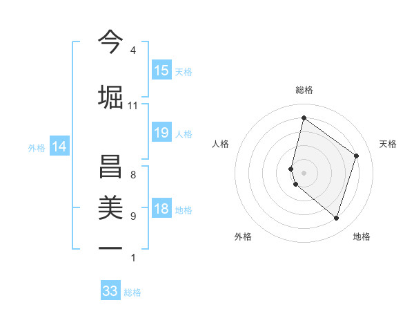 今堀 昌美一さんを姓名の画数から五運を鑑定