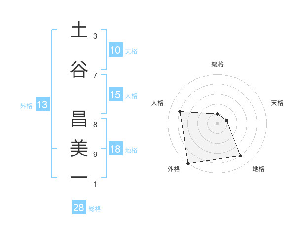 土谷 昌美一さんを姓名の画数から五運を鑑定