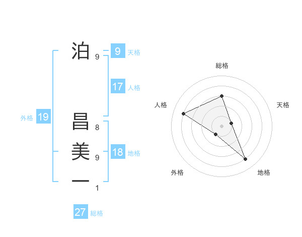 泊 昌美一さんを姓名の画数から五運を鑑定