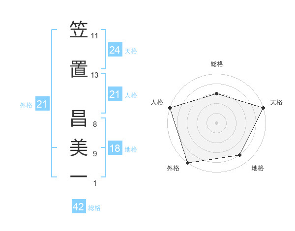 笠置 昌美一さんを姓名の画数から五運を鑑定