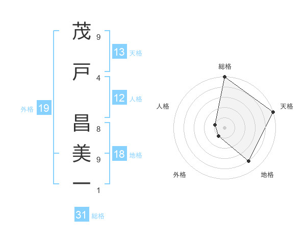 茂戸 昌美一さんを姓名の画数から五運を鑑定