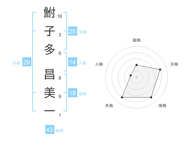 鮒子多 昌美一さんを姓名の画数から五運を鑑定