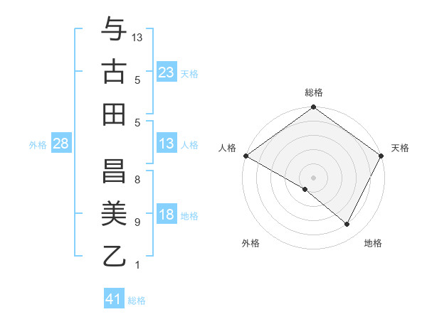 与古田 昌美乙さんの人格は13画の5点!