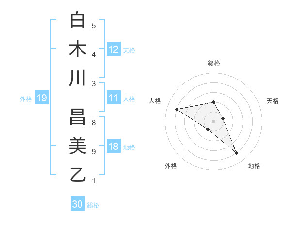白木川 昌美乙さんを姓名の画数から五運を鑑定