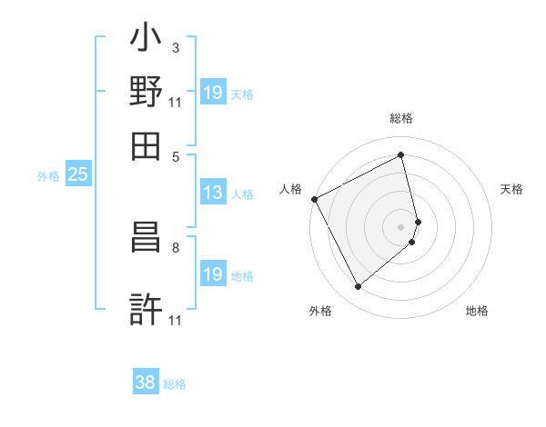 小野田 昌許さんを姓名の画数から五運を鑑定