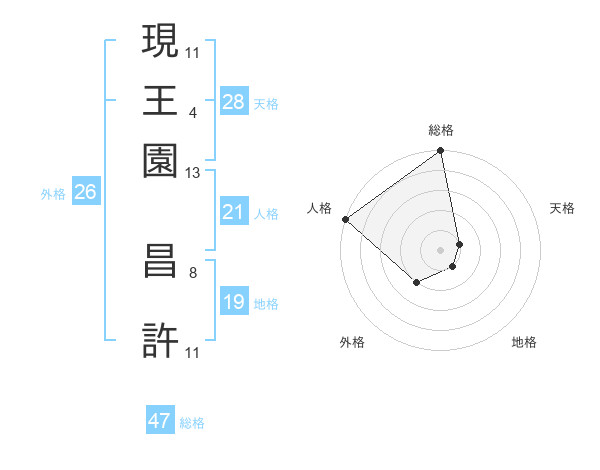 現王園 昌許さんを姓名の画数から五運を鑑定