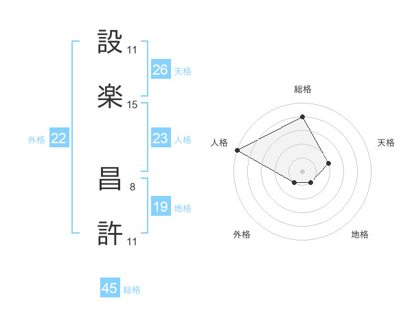 設楽 昌許さんを姓名の画数から五運を鑑定