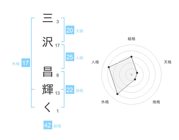 三沢 昌輝くさんを姓名の画数から五運を鑑定