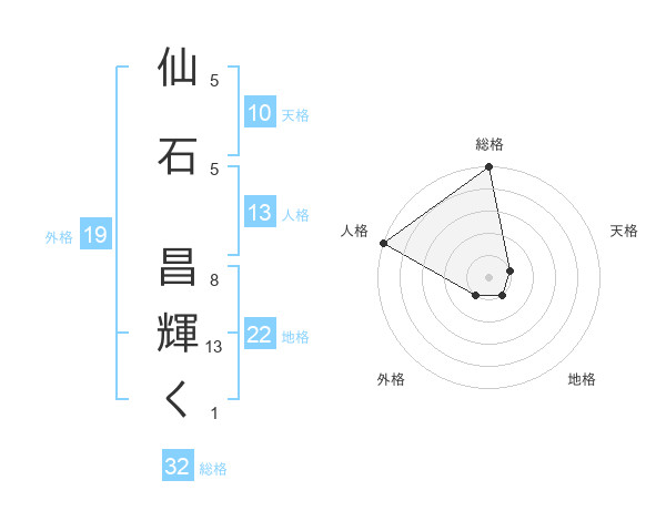 仙石 昌輝くさんを姓名の画数から五運を鑑定